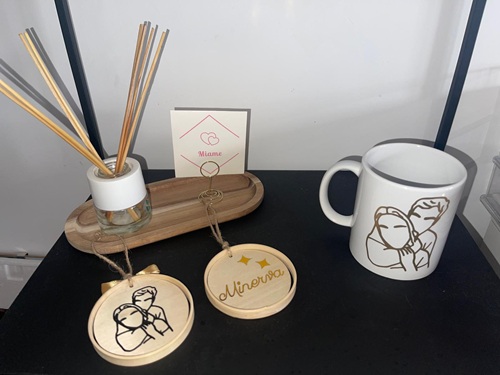 En mi taller, cada regalo es único y hecho con mucho cariño. Transformo materiales simples en regalos personalizados que cuentan historias y crean recuerdos especiales. Cada pieza se hace con mucho cuidado para reflejar los deseos de quien la recibe.